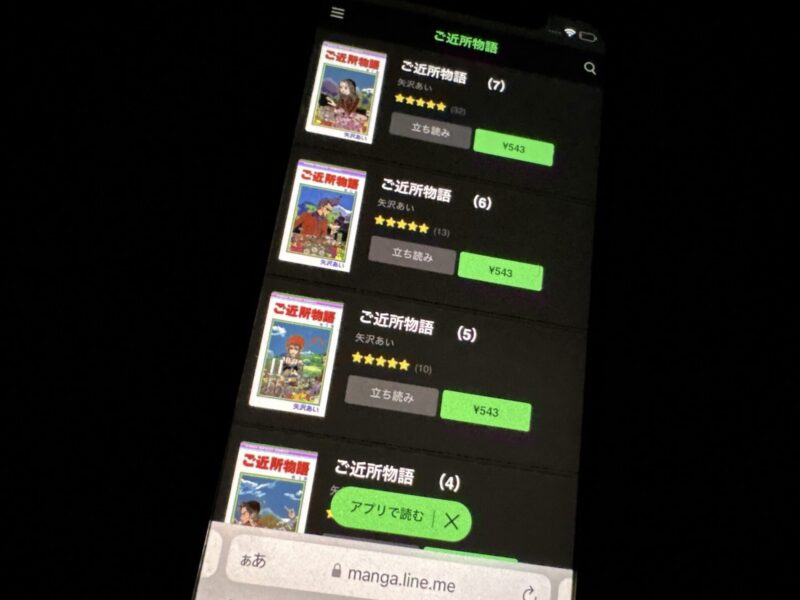 LINEが運営する「LINEマンガ」では、ご近所物語を7巻までを有料配信しています。