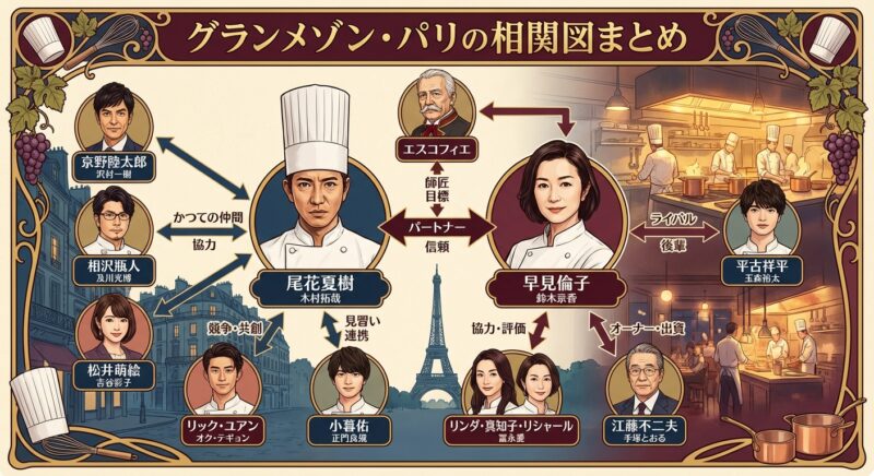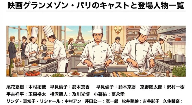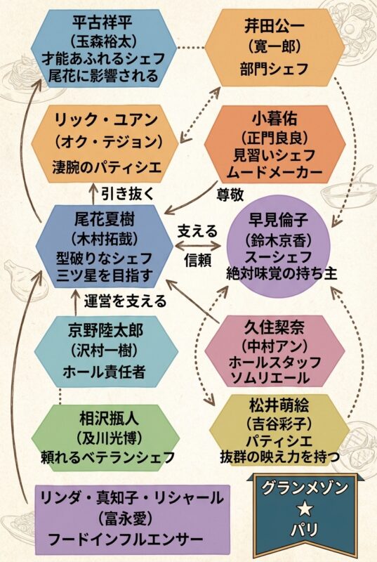 そこで本記事では、映画「グランメゾン・パリ」の相関図を詳しく解説し、主要キャストや新キャラクターの情報をわかりやすくまとめました。これを読めば、尾花たちが挑む最後の戦いをより深く理解し、感動を味わうことができるでしょう。ぜひ劇場へ足を運ぶ前のガイドとしてお役立てください。