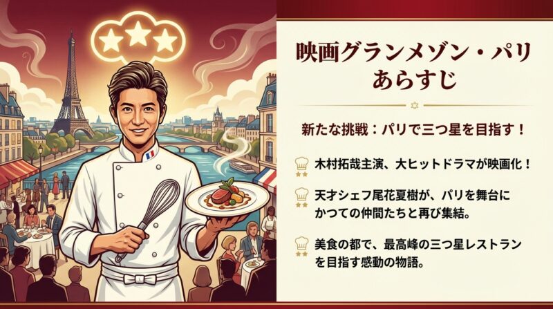 2019年に放送され、多くの視聴者を熱狂させたドラマ「グランメゾン東京」。その待望の続編となる映画「グランメゾン・パリ」がいよいよ公開されます。木村拓哉さん演じる尾花夏樹が、料理の本場パリで三つ星獲得に挑む姿に、胸を躍らせている方も多いのではないでしょうか。