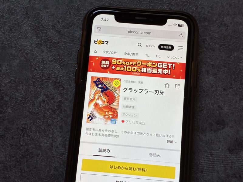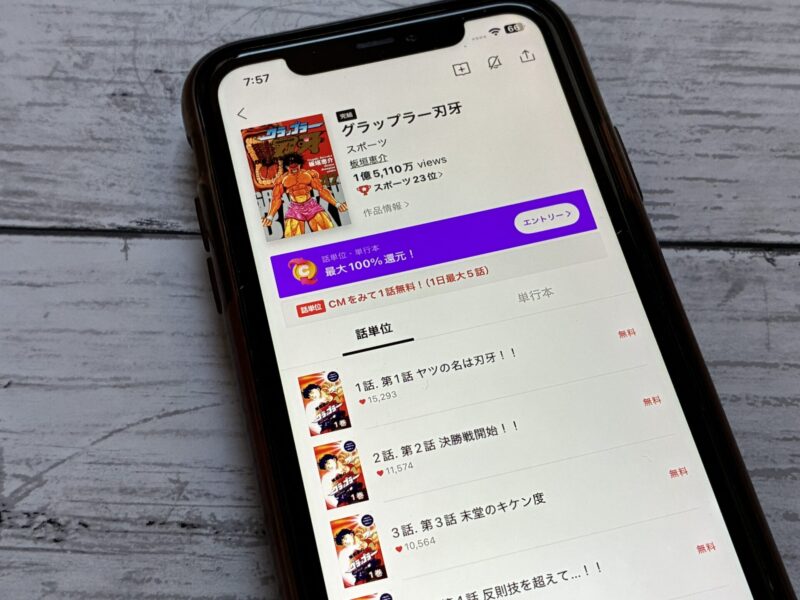 ここからは、グラップラー刃牙の漫画が無料で読めるアプリを紹介します。