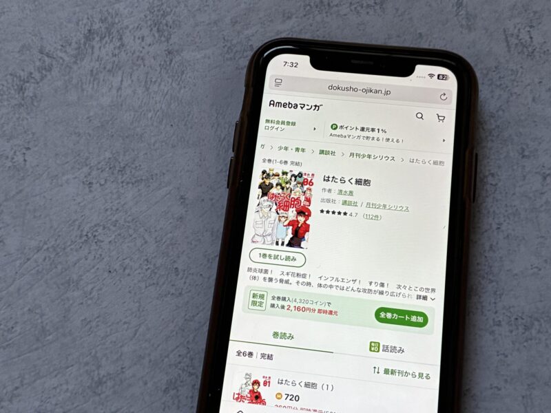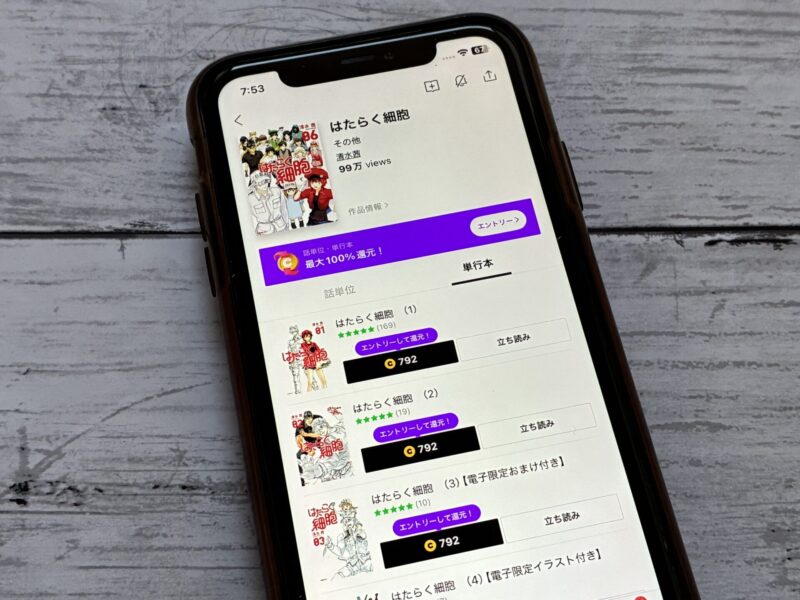 キャンペーンを利用することで一部の巻は無料で読めるため、お得にはたらく細胞漫画を全巻読むためには利用しましょう。