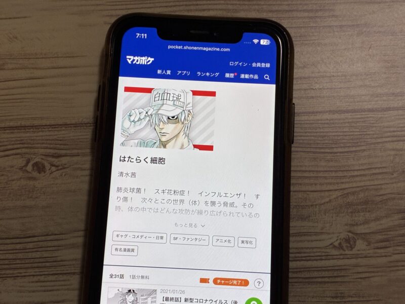 ここからは、はたらく細胞の漫画が無料で読めるアプリを紹介します。