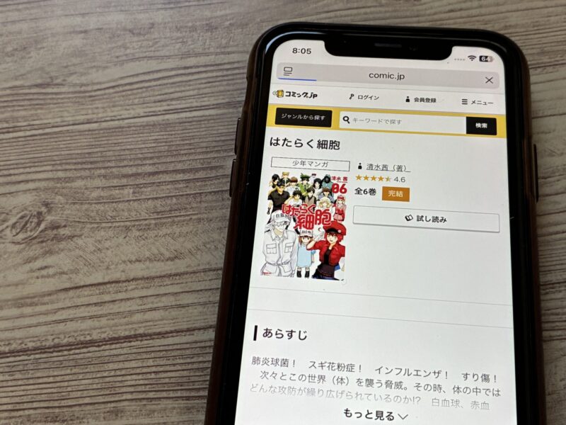 はたらく細胞はまるごと無料では読めませんが、試し読みはできます。