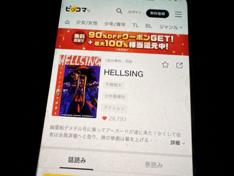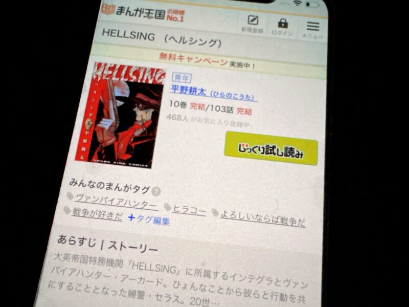 HELLSINGが、無料で読める漫画アプリを紹介します。