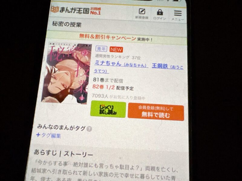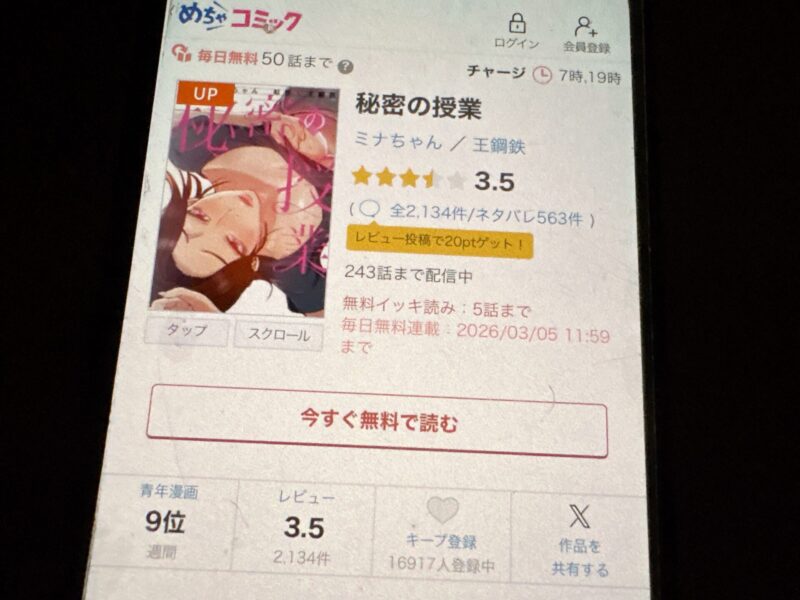 ここからは、秘密の授業の漫画が無料で読めるアプリを紹介します。
