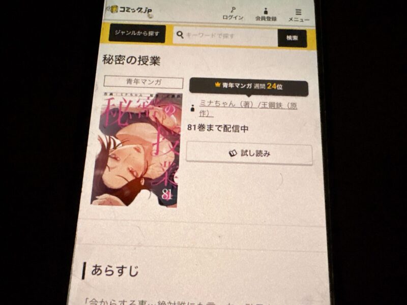 秘密の授業はまるごと無料では読めませんが、試し読みはできます。
