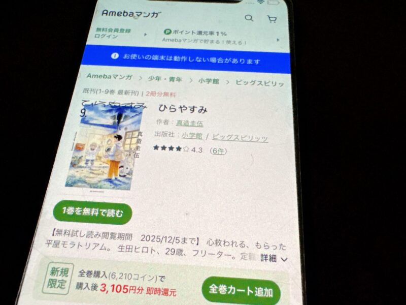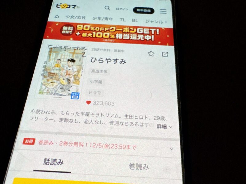 キャンペーンを利用することで一部の巻は無料で読めるため、お得にひらやすみ漫画を全巻読むためには利用しましょう。