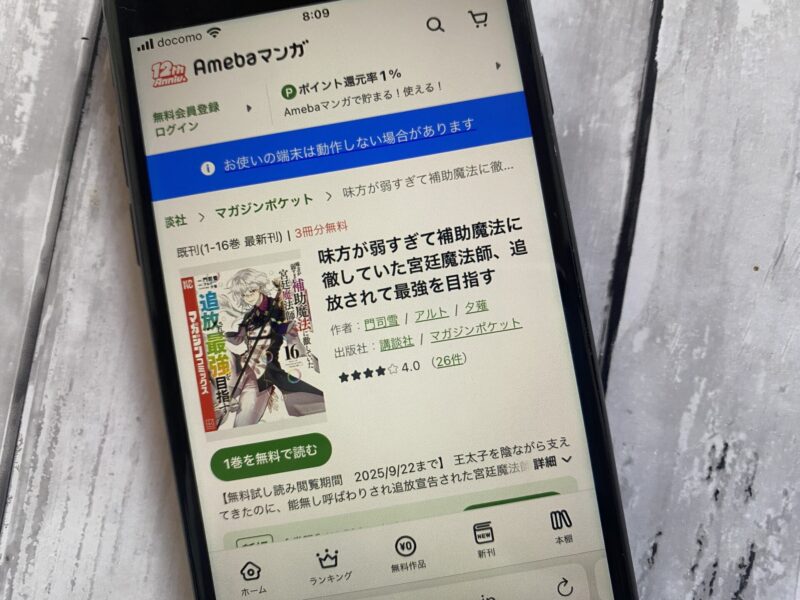 マガジンポケットで連載している大人気漫画「味方が弱すぎて補助魔法に徹していた宮廷魔法師、追放されて最強を目指す」は全17巻まで出ています。(18巻は2026年1月9日の発売予定)