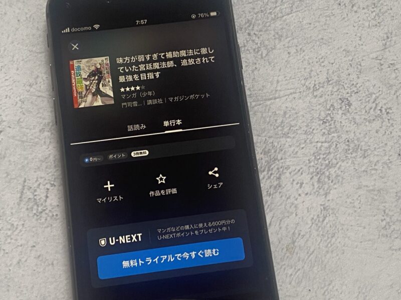 31日間の無料トライアルがあるU-NEXTですが、最新刊も無料で読めます。