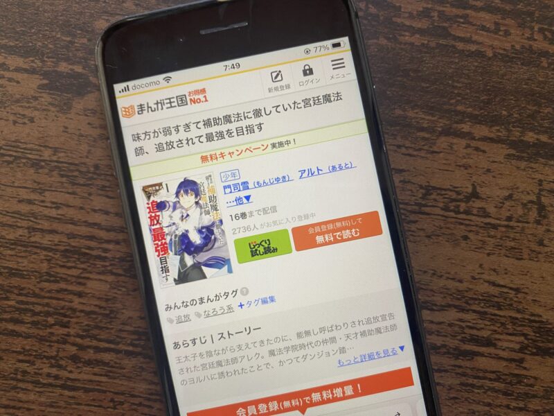ここからは、味方が弱すぎて補助魔法に徹していた宮廷魔法師、追放されて最強を目指すの漫画が無料で読めるアプリを紹介します。