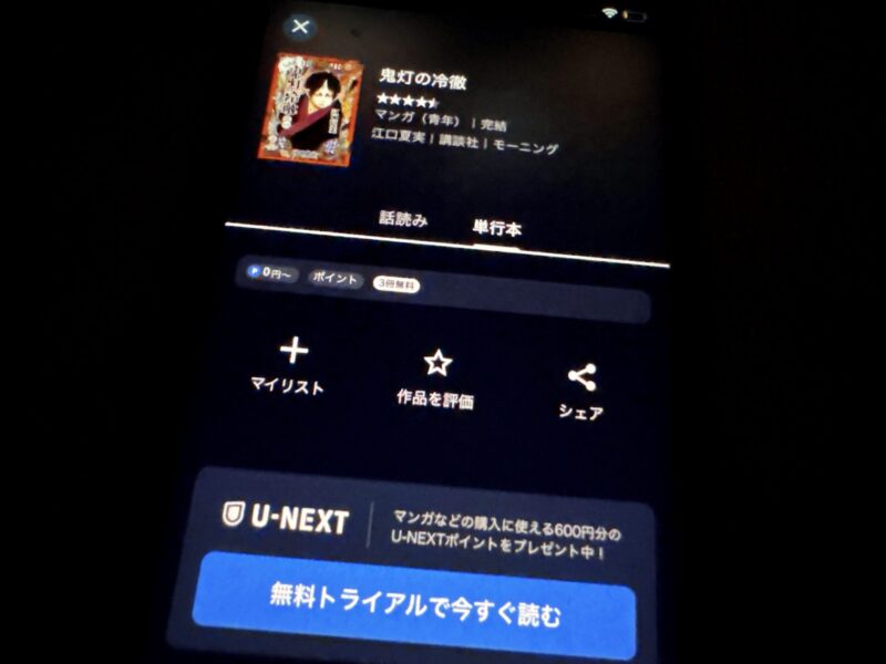 動画配信サービスであるU-NEXTでは、アニメが見放題なだけでなく無料トライアルでもらえる600ポイントを利用して最終刊をお得に読むことができます。