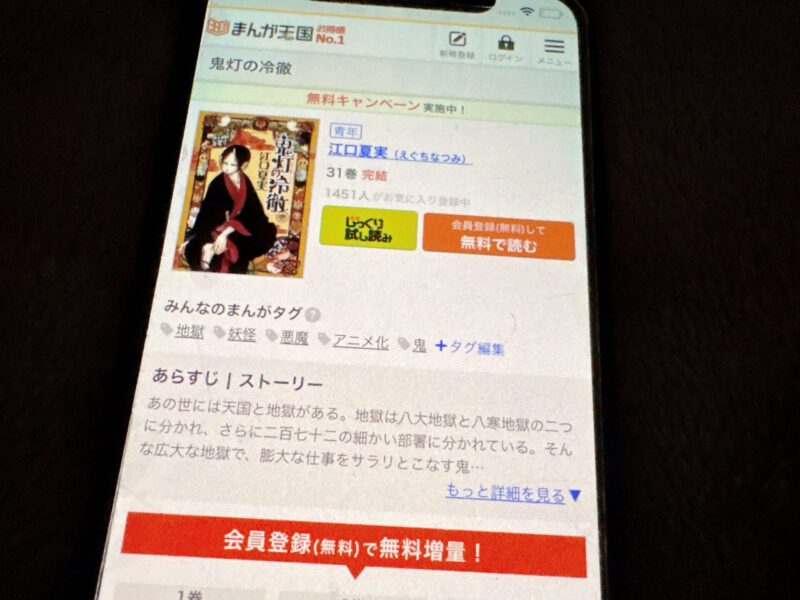 キャンペーンを利用することで一部の巻は無料で読めるため、お得に鬼灯の冷徹漫画を全巻読むためには利用しましょう
