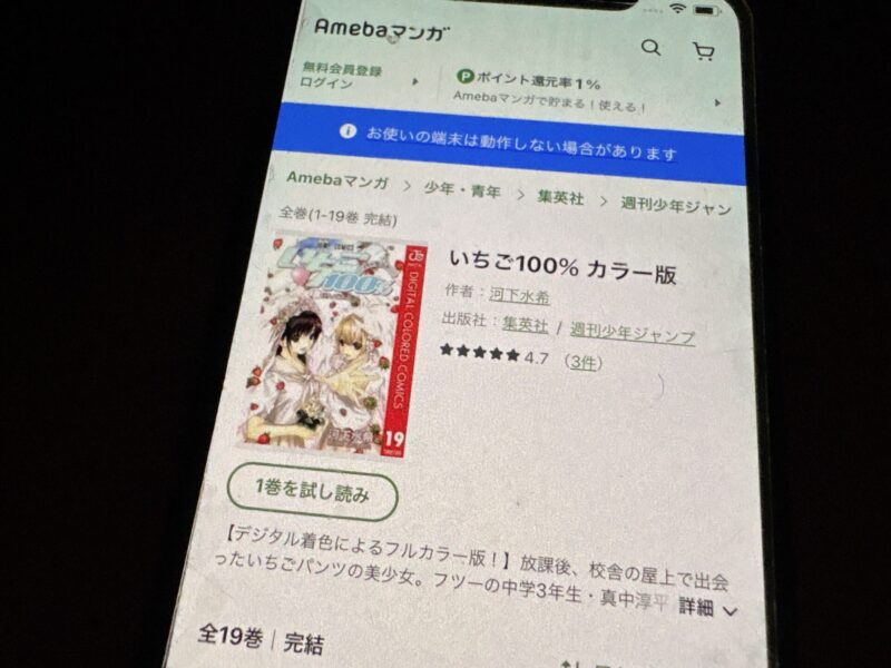 ここからは、いちご100%の漫画が無料で読めるアプリを紹介します。