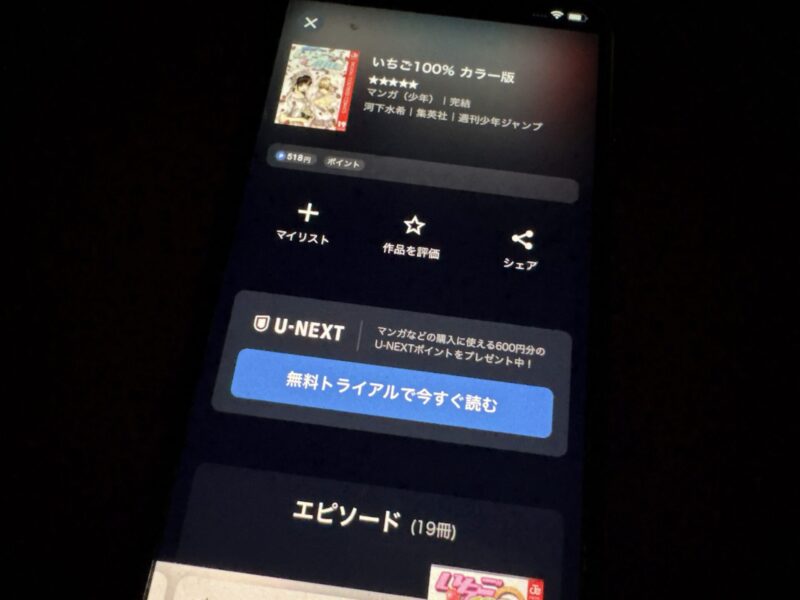 31日間の無料トライアルがあるU-NEXTですが、最新刊も無料で読めます。