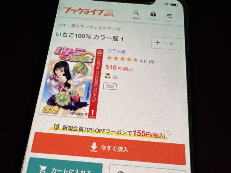キャンペーンを利用すると、いちご100%を割安にまとめて購入したり、1巻だけ無料で購入することが可能です