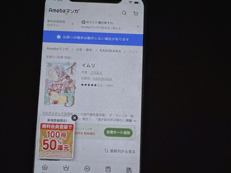 キャンペーンを利用すると、イムリを割安にまとめて購入したり、1巻だけ無料で購入することが可能です
