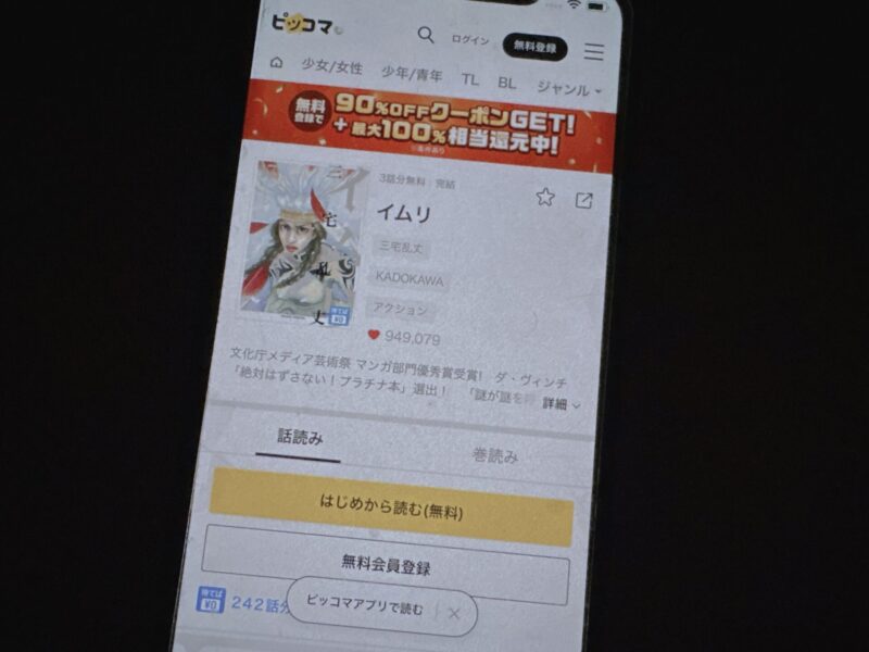 ここからは、イムリの漫画が無料で読めるアプリを紹介します。