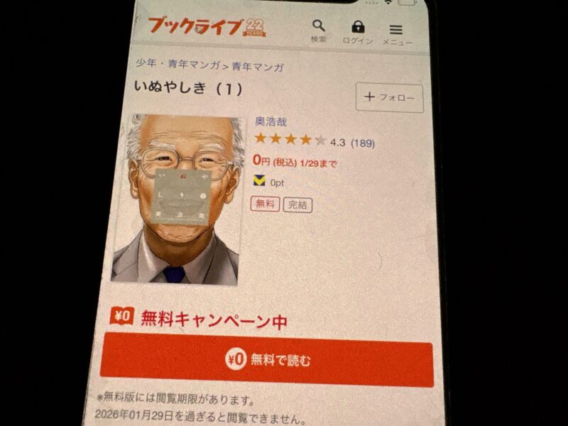 この記事では、最新のいぬやしき無料キャンペーンや電子書籍の割引情報などの最新情報を発信しています。