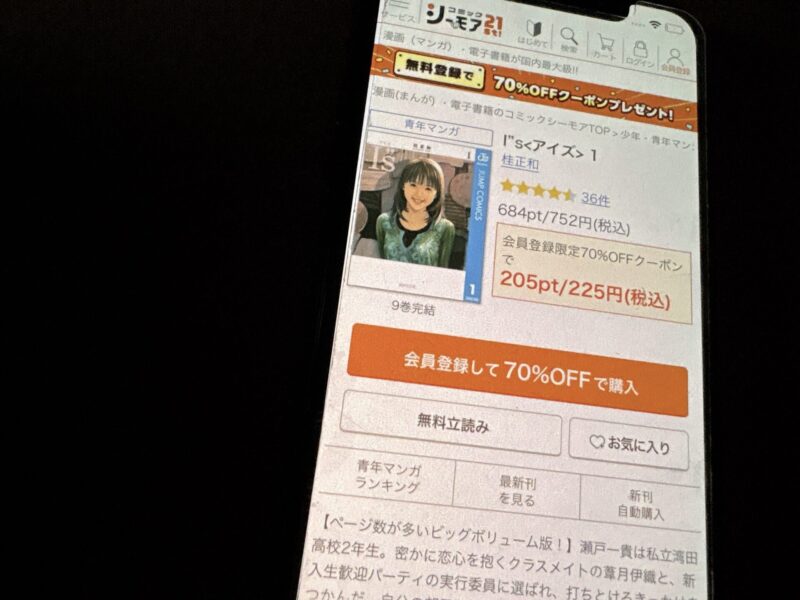また、ブックライブは会員登録するだけで1冊限定の70%オフクーポンがもらえます。