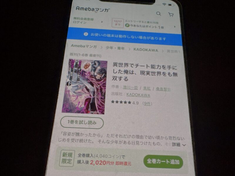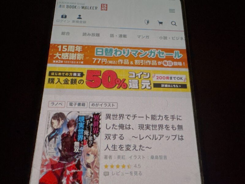 キャンペーンを利用すると、「異世界でチート能力を手にした俺は、現実世界をも無双する」を割安にまとめて購入したり、1巻だけ無料で購入することが可能です