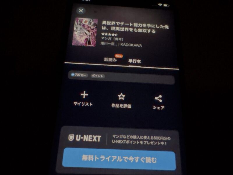 31日間の無料トライアルがあるU-NEXTですが、最新刊も無料で読めます。