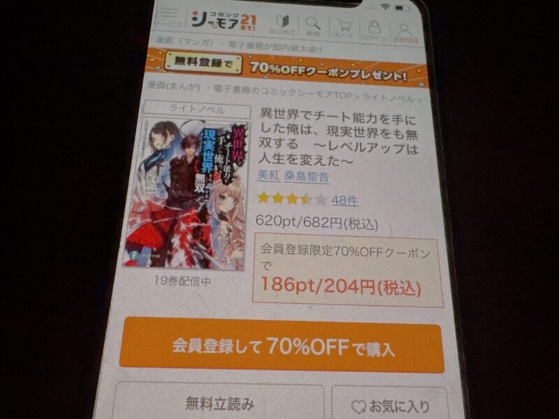 また、ブックライブは会員登録するだけで1冊限定の70%オフクーポンがもらえます