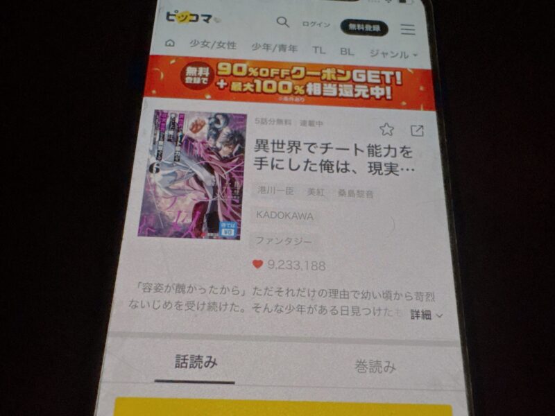 ここからは、「異世界でチート能力を手にした俺は、現実世界をも無双する」の漫画が無料で読めるアプリを紹介します。