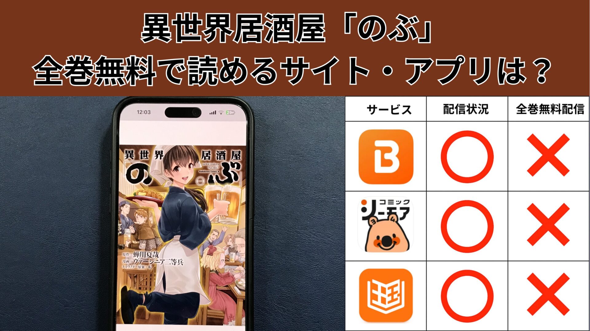 ここからは、異世界居酒屋「のぶ」の漫画が無料で読めるアプリを紹介します。