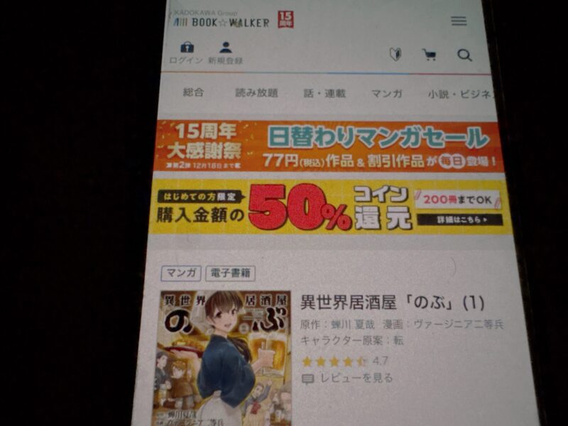キャンペーンを利用すると、異世界居酒屋「のぶ」を割安にまとめて購入したり、1巻だけ無料で購入することが可能です。