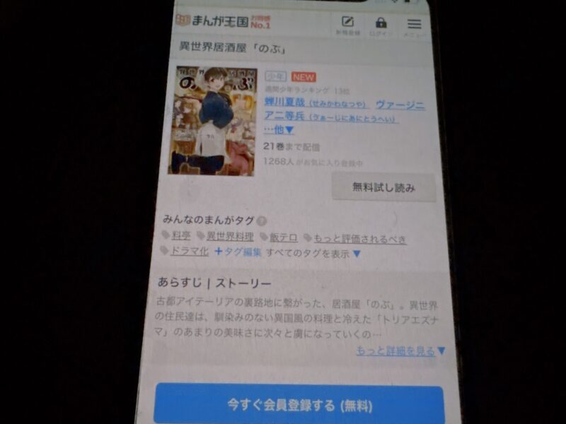 異世界居酒屋「のぶ」はまるごと無料では読めませんが、試し読みはできます。