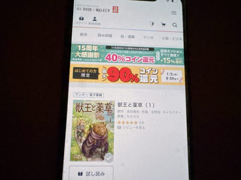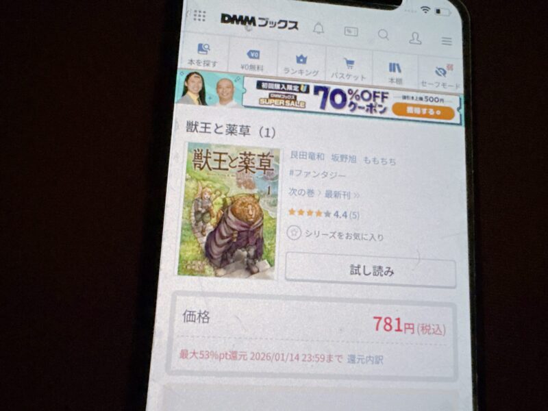 キャンペーンを利用することで一部の巻は無料で読めるため、お得に獣王と薬草漫画を全巻読むためには利用しましょう。