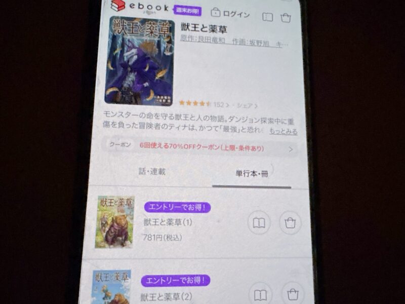 獣王と薬草の場合、全7巻までを5,040ポイントで購入できます。