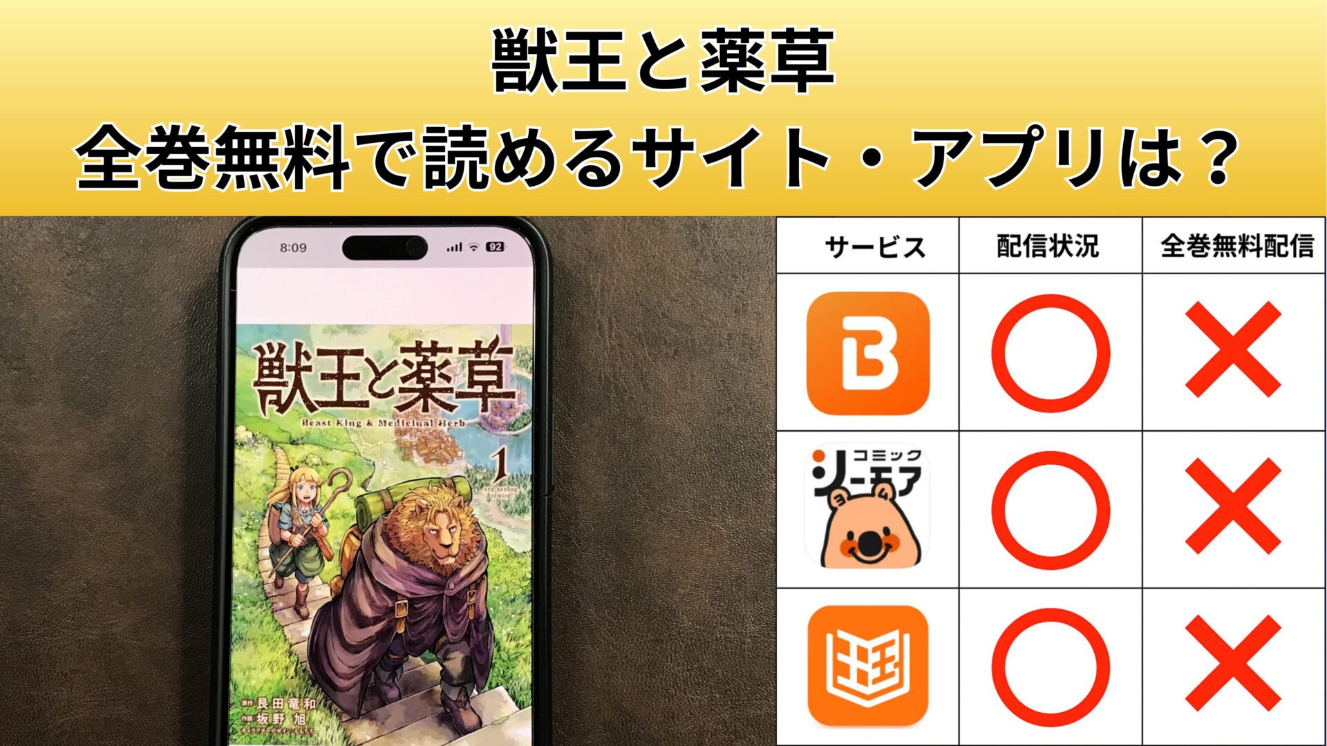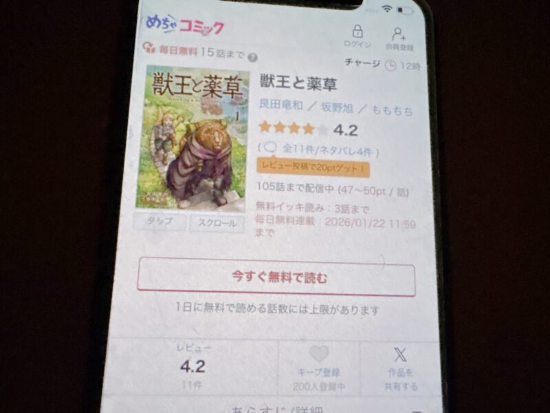 獣王と薬草が、無料で読める漫画アプリを紹介します。