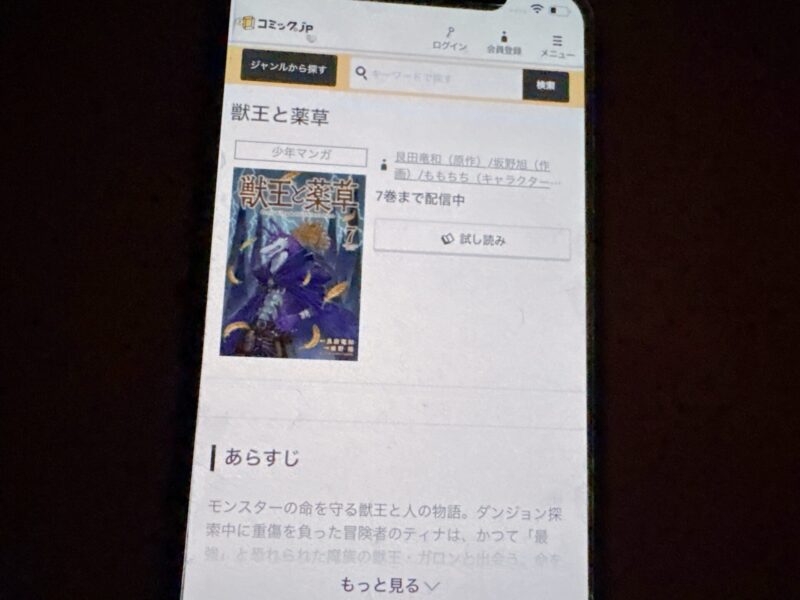 ここからは、獣王と薬草の漫画が無料で読めるアプリを紹介します。