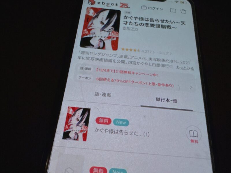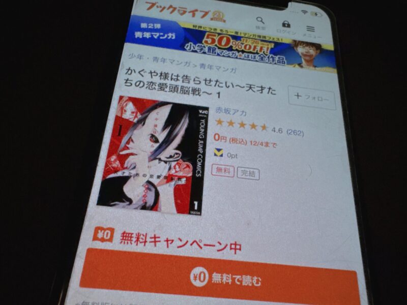 キャンペーンを利用すると、かぐや様は告らせたいを割安にまとめて購入したり、1巻だけ無料で購入することが可能です。