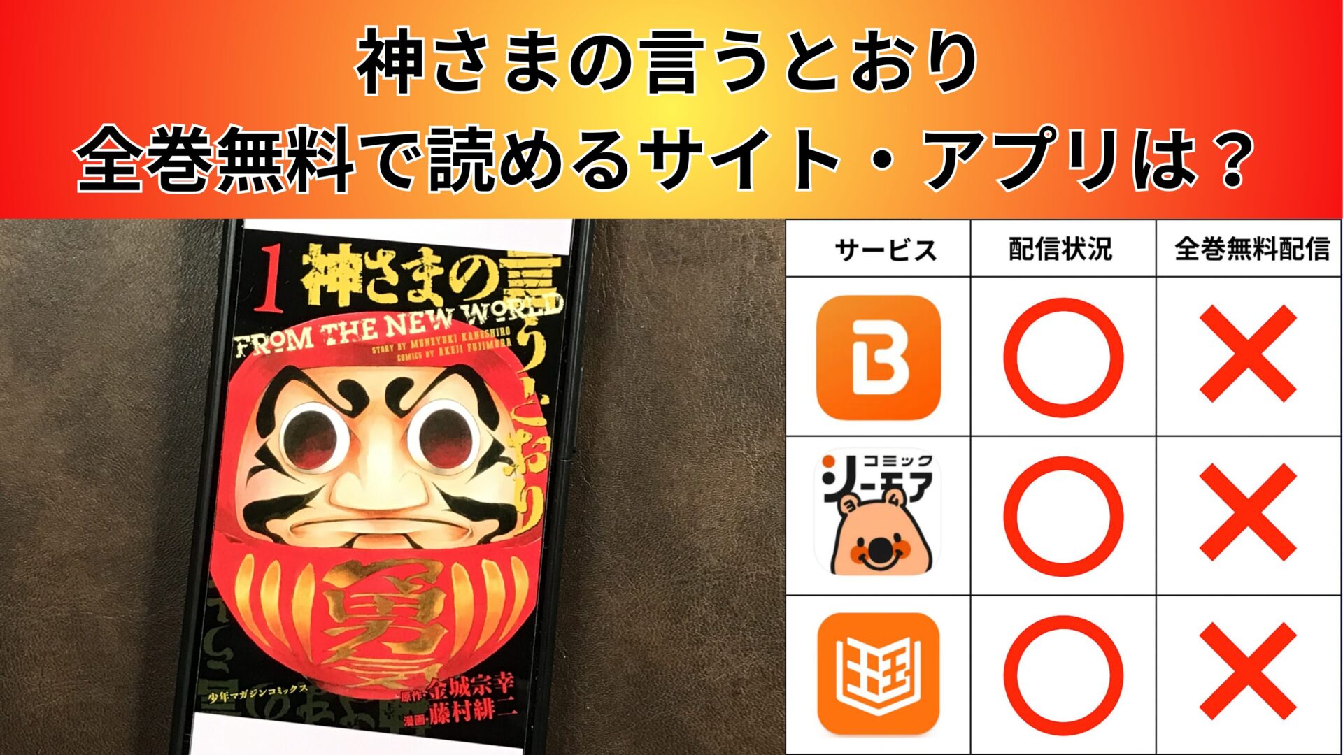この記事では、最新の神さまの言うとおり無料キャンペーンや電子書籍の割引情報などの最新情報を発信しています。