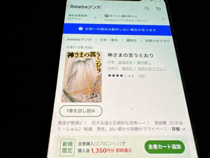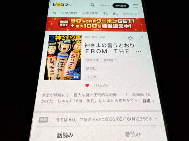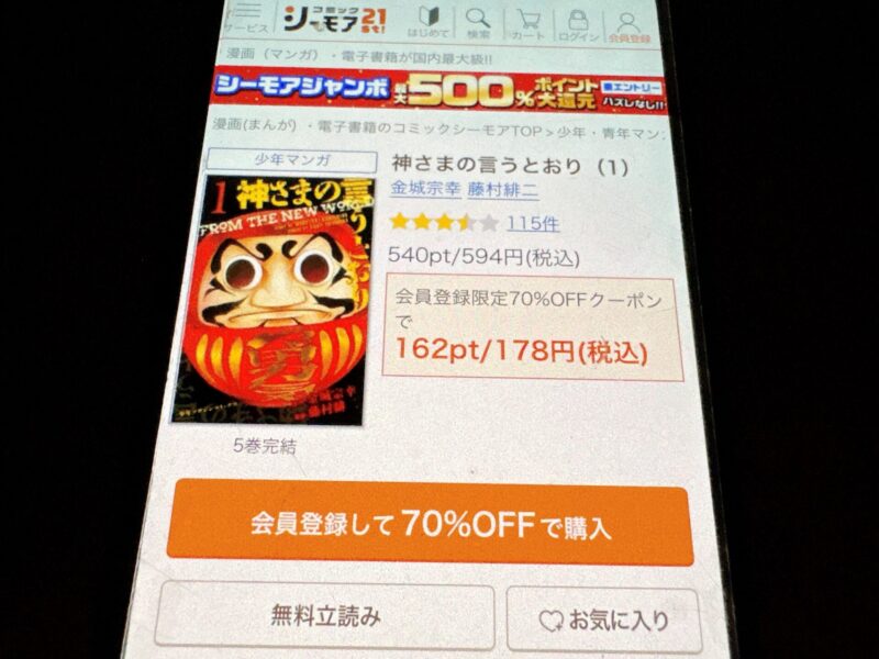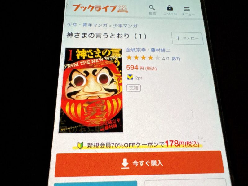 初回クーポンと組み合わせることで神さまの言うとおり全巻をよりお得に購入することもできるので、気になる人は公式サイトをチェックしてみましょう。