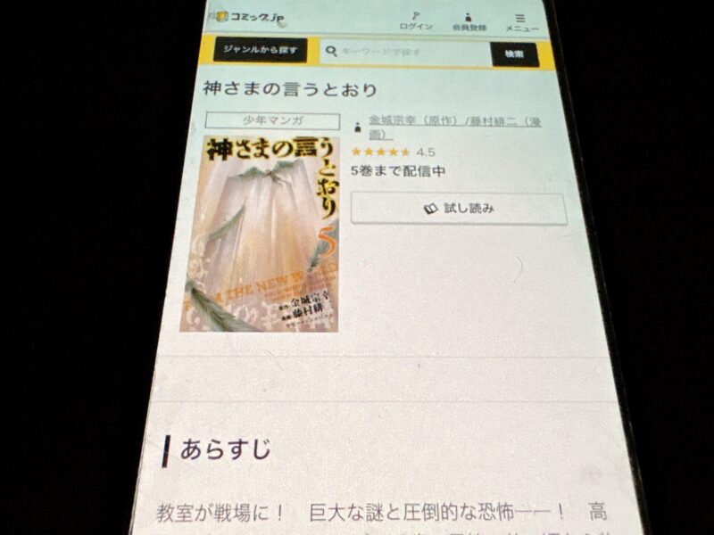 神さまの言うとおりはまるごと無料では読めませんが、試し読みはできます。