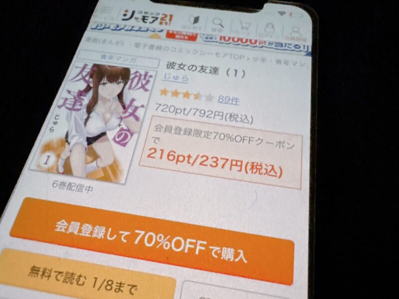 また、ブックライブは会員登録するだけで1冊限定の70%オフクーポンがもらえます。