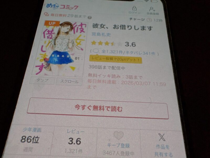 キャンペーンを利用することで一部の巻は無料で読めるため、お得に彼女、お借りします漫画を全巻読むためには利用しましょう。
