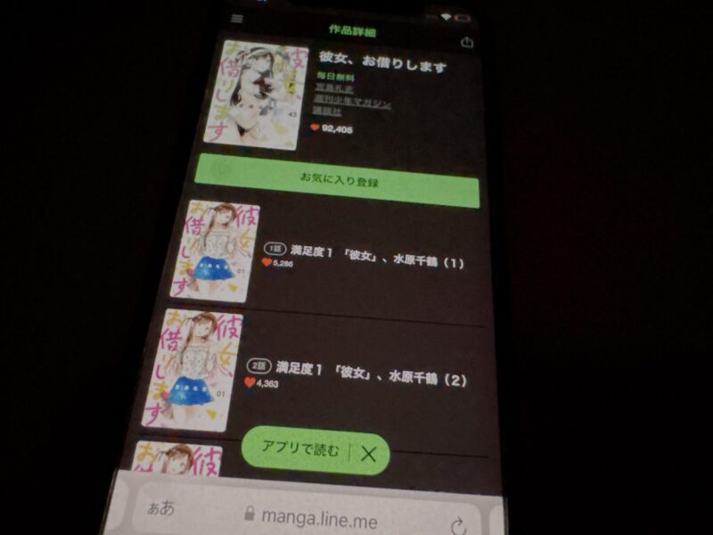 LINEが運営する「LINEマンガ」では、彼女、お借りしますを有料配信しています。