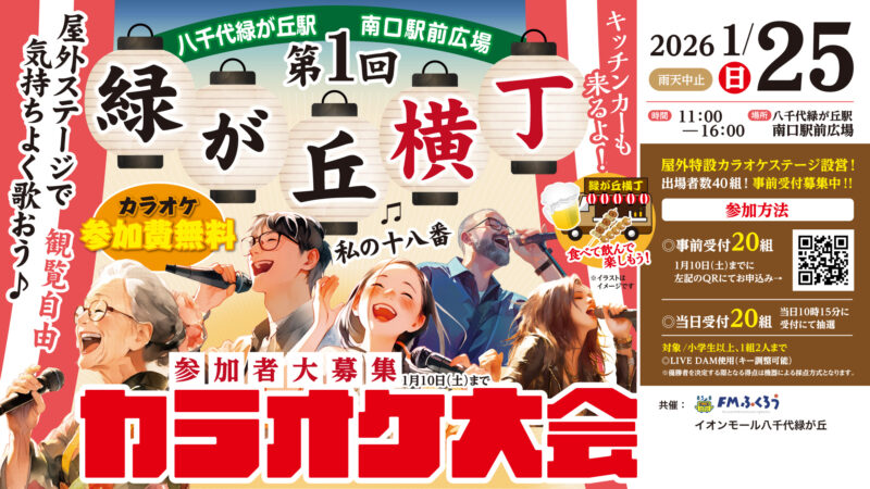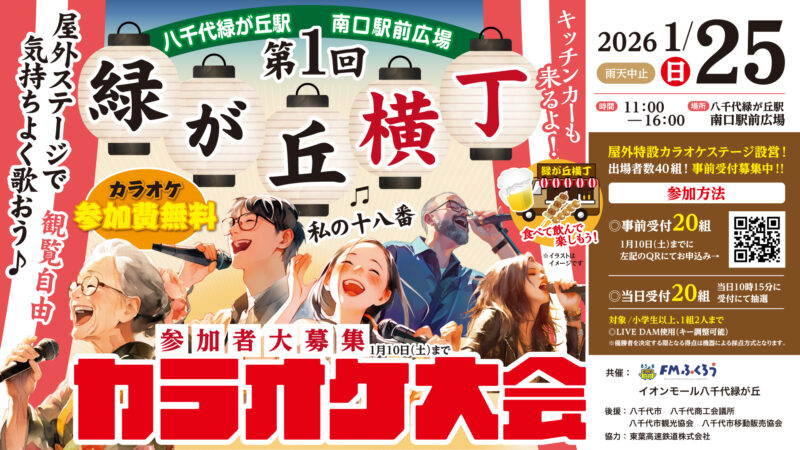 八千代市の中心地・八千代緑が丘駅前広場で開催される、地域参加型の屋外カラオケ大会です。