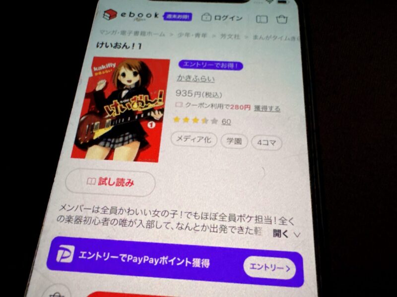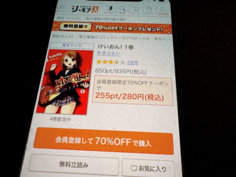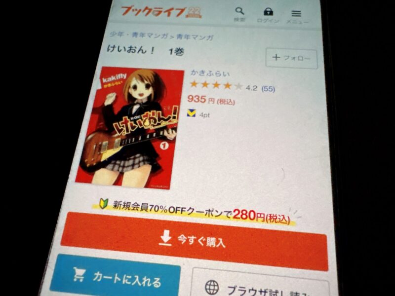 初回クーポンと組み合わせることでけいおん!全巻をよりお得に購入することもできるので、気になる人は公式サイトをチェックしてみましょう。