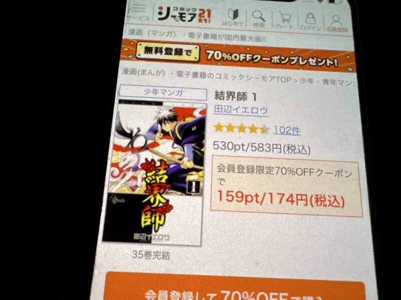 たとえば結界師1巻(税込583円)を購入する場合、クーポン利用で175円(税込)で購入できます。