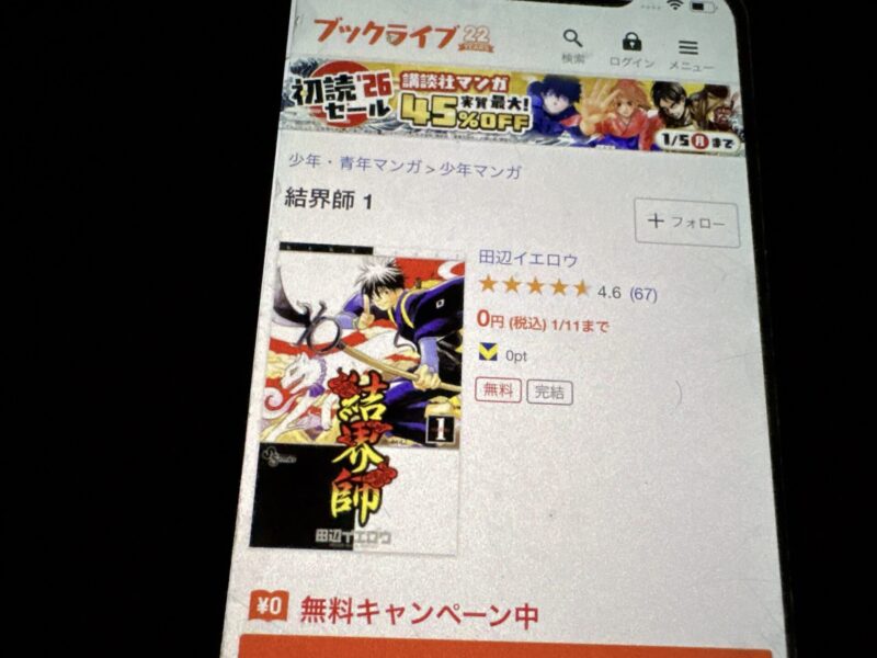 キャンペーンを利用すると、結界師を割安にまとめて購入したり、1巻だけ無料で購入することが可能です。