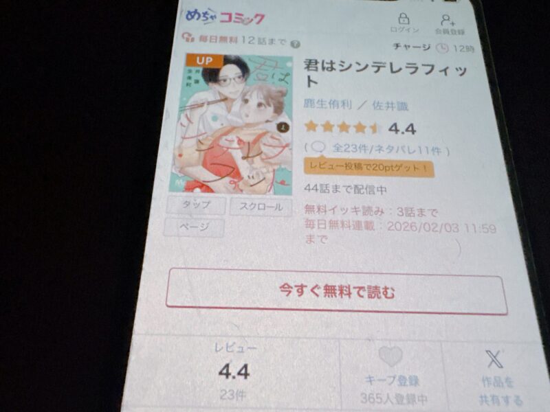キャンペーンを利用することで一部の話数は無料で読めるため、お得に君はシンデレラフィット漫画を全話読むためには利用しましょう。