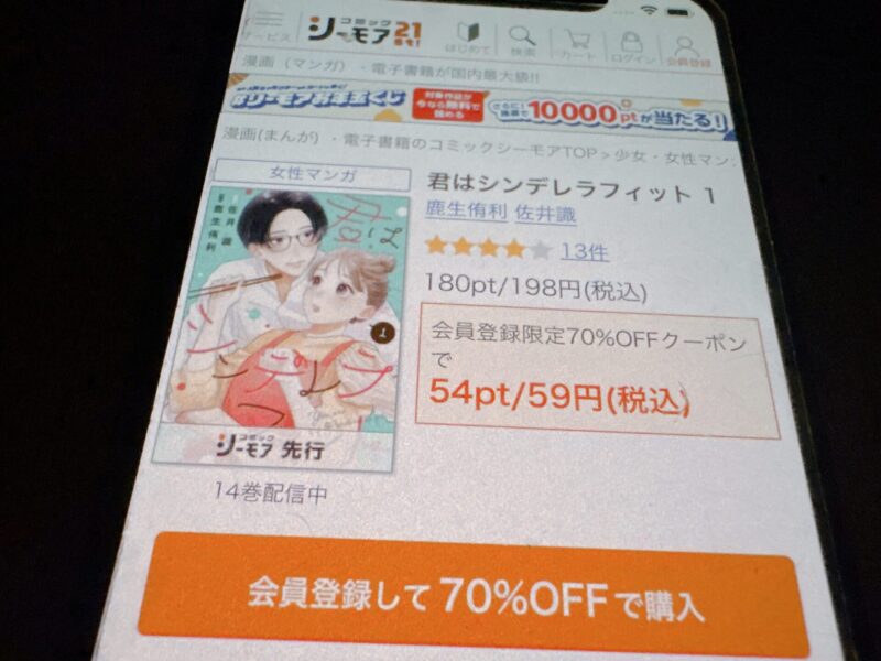 キャンペーンを利用すると、君はシンデレラフィットを割安にまとめて購入したり、1話だけ無料で購入することが可能です。