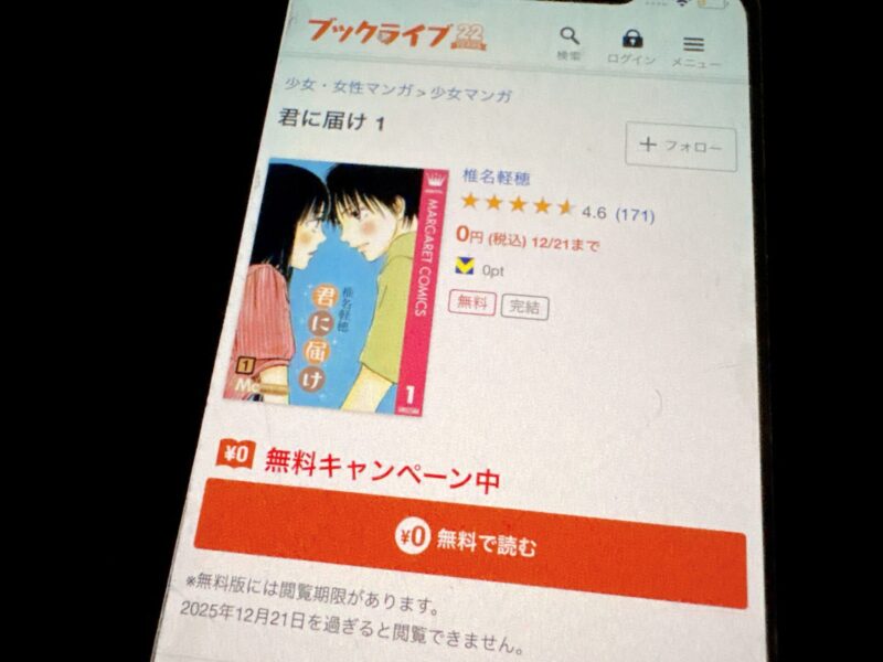 キャンペーンを利用すると、君に届けを割安にまとめて購入したり、1巻だけ無料で購入することが可能です。