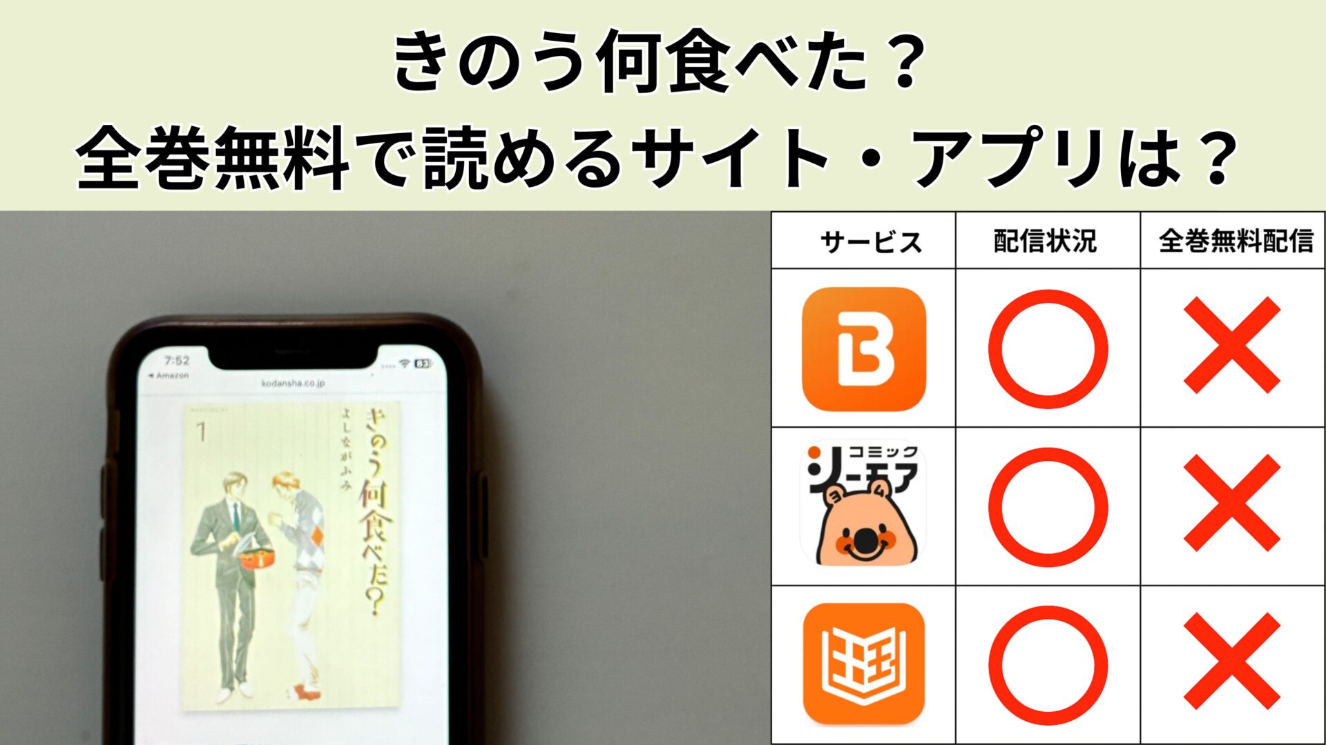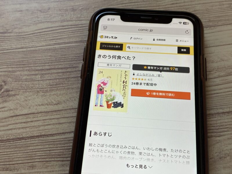 ここからは、きのう何食べた?の漫画が無料で読めるアプリを紹介します。