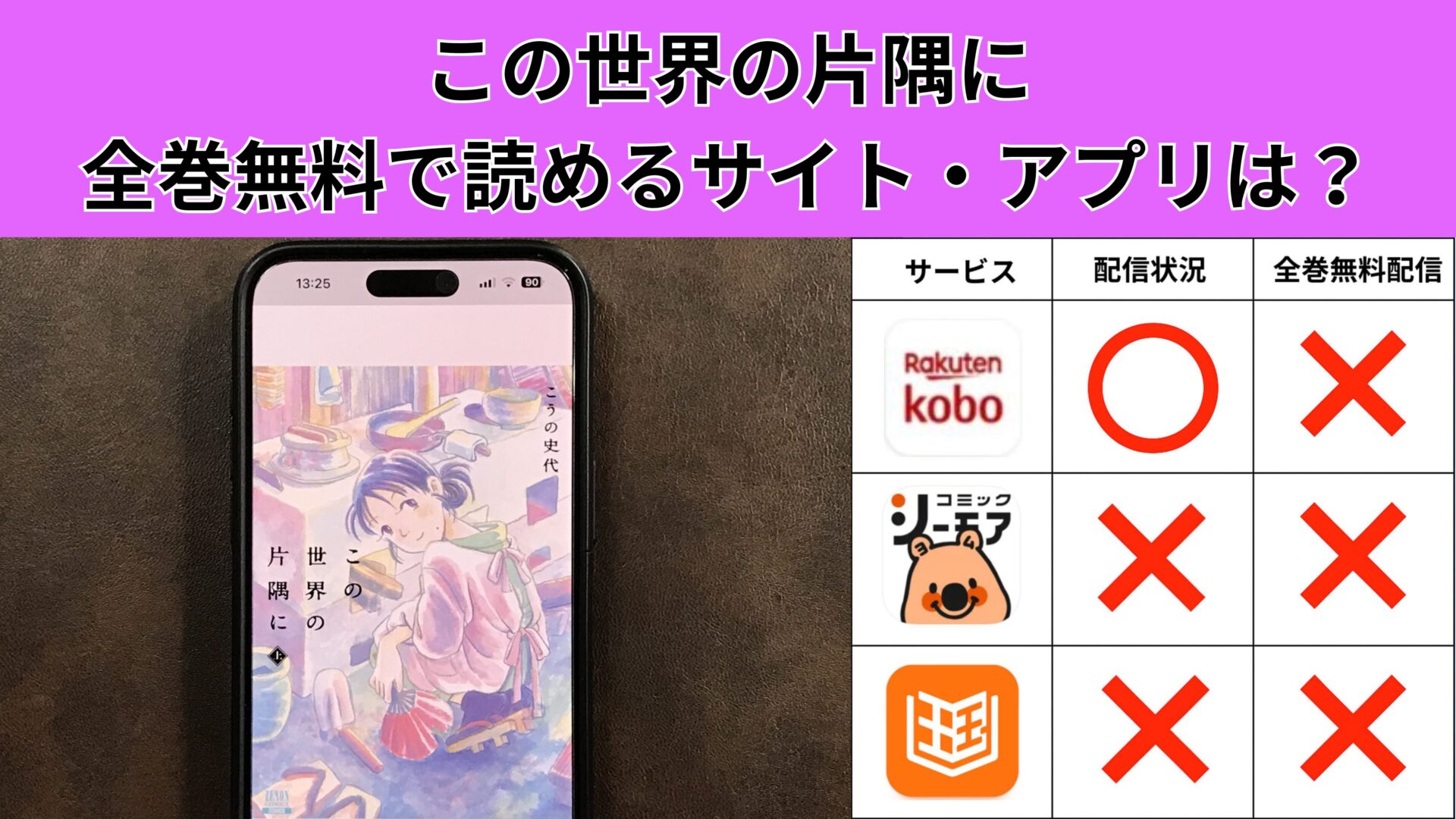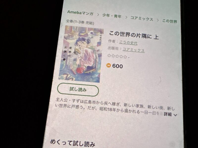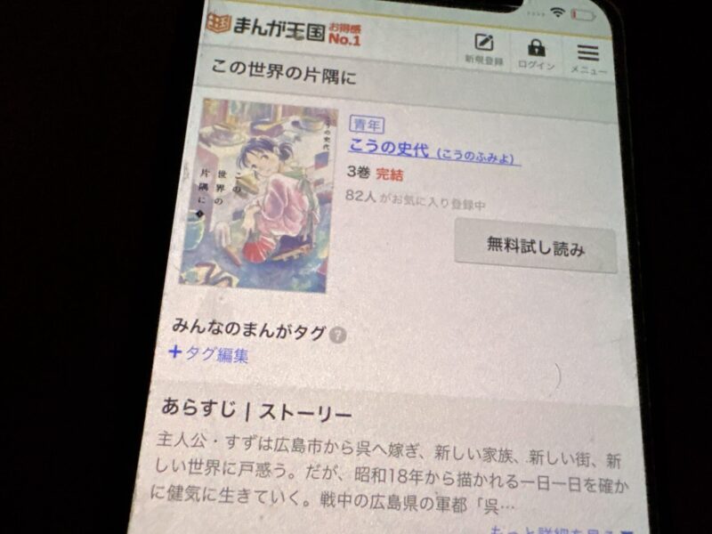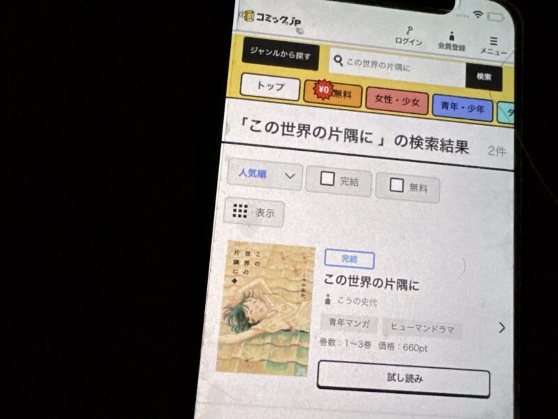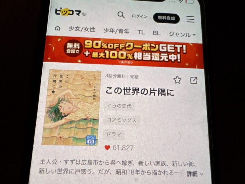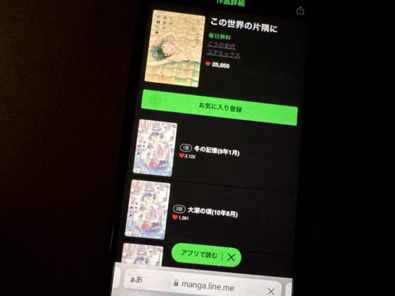 この世界の片隅にが、無料で読める漫画アプリを紹介します。